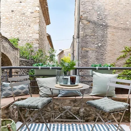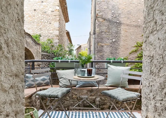 Zur Entspannung der Gäste bietet die 1-Zimmer- El Pajar Del Emporda - Costa Brava eine Terrasse mit einem Tisch.